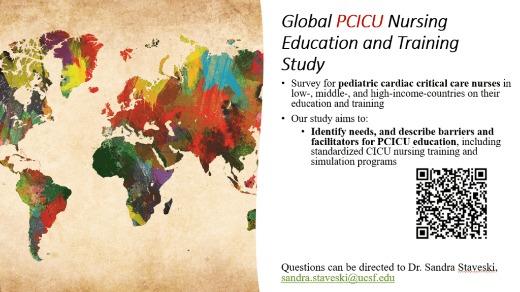 This survey is for pediatric cardiac critical care nurses in low-, middle-, and high-income-countries on their education and training. The study aims to identify needs and describe barriers and facilitators for PCICU education, including standardized CICU nursing training and simulation programs. Learn more and take the survey here